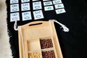 Děti jednotlivé počty ještě před touto aktivitou znaly, přečetly si je v několika různých knihách, měly je napsané i na informačních kartičkách, takže jejich počet pro ně nebyl velkým překvapením. Na druhou stranu – ačkoli mají více než půl roku k dispozici perlový materiál, reálný počet několika desítek je pro ně stále zajímavý, zejména ve chvíli, kdy jej musí fyzicky odpočítat po jedné. 😉